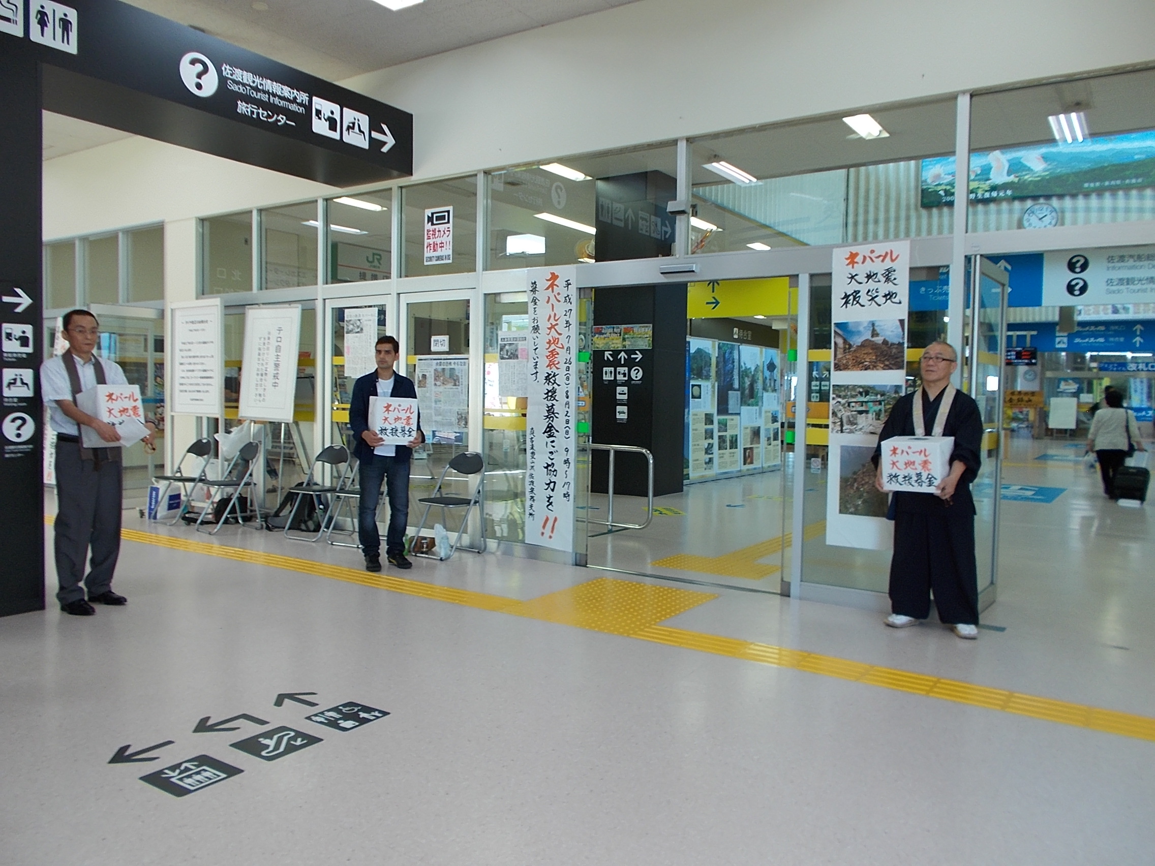 ネパールはお釈迦さまが誕生された国であり、我が国仏教徒として日々の生活に苦しんでいるネパールの被災者支援に、微力ながら尽力したいと考え救援金募金活動を実施しました。 実施日:平成27年7月26日(日)、8月2日(日) 実施場所:両津港佐渡汽船ターミナル入り口付近